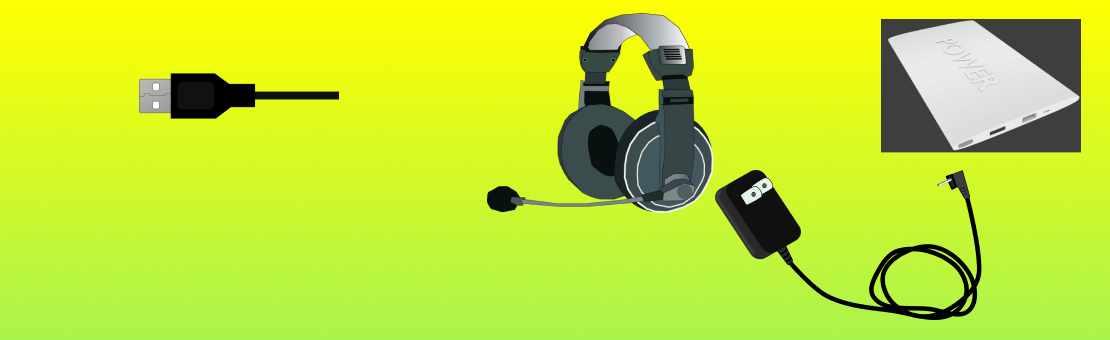 USB-kabels, powerbank, hoofdtelefoon, USB-lader